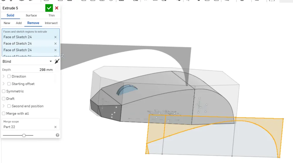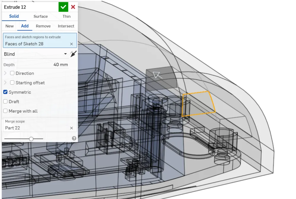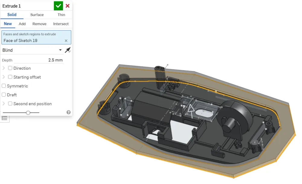 Make sure that your section turns dark gray. This means you created a closed shape and can perform 3D operations using that section.