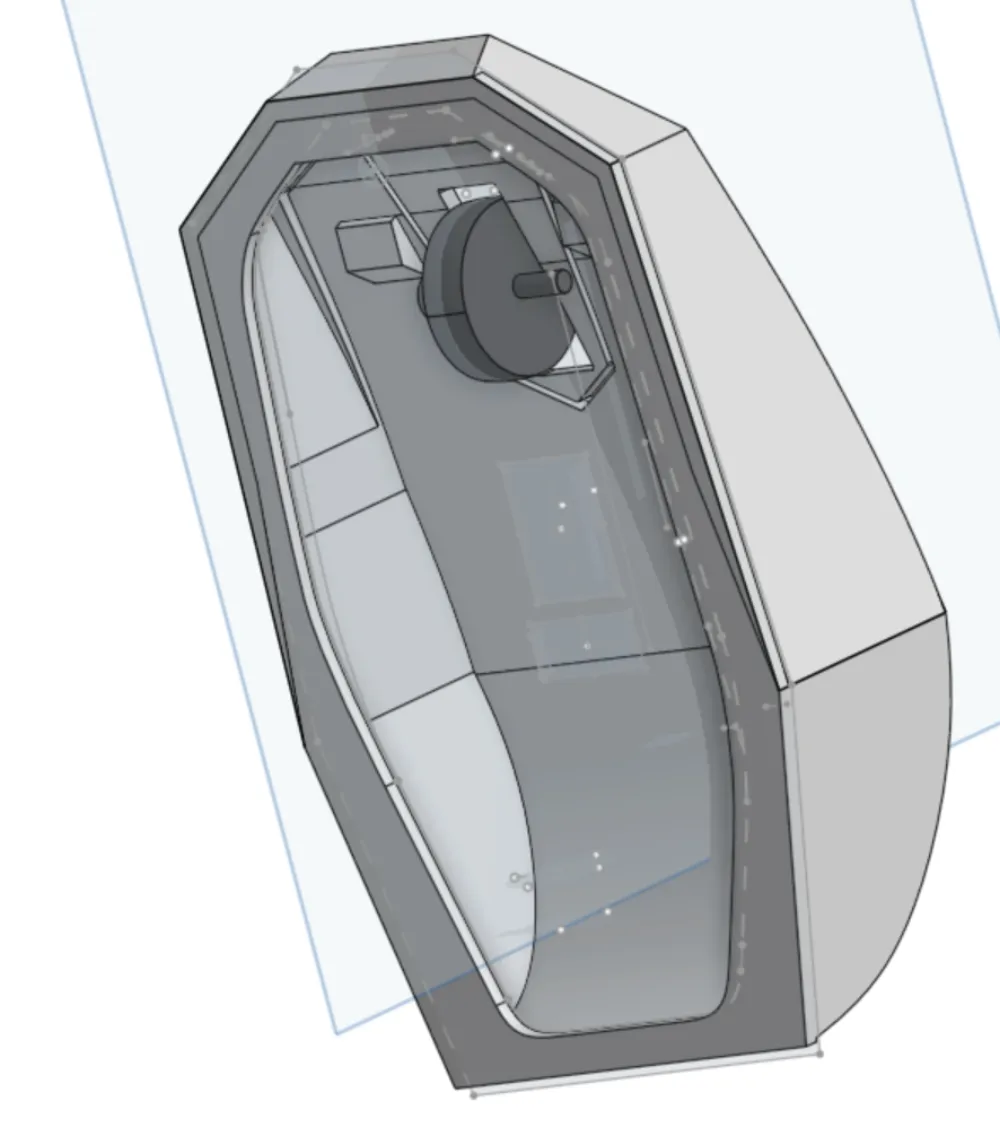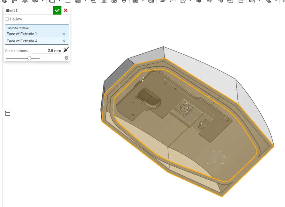 Head to the bottom of your mouse. Hide the mid and base. Use the shell tool on the bottom:
